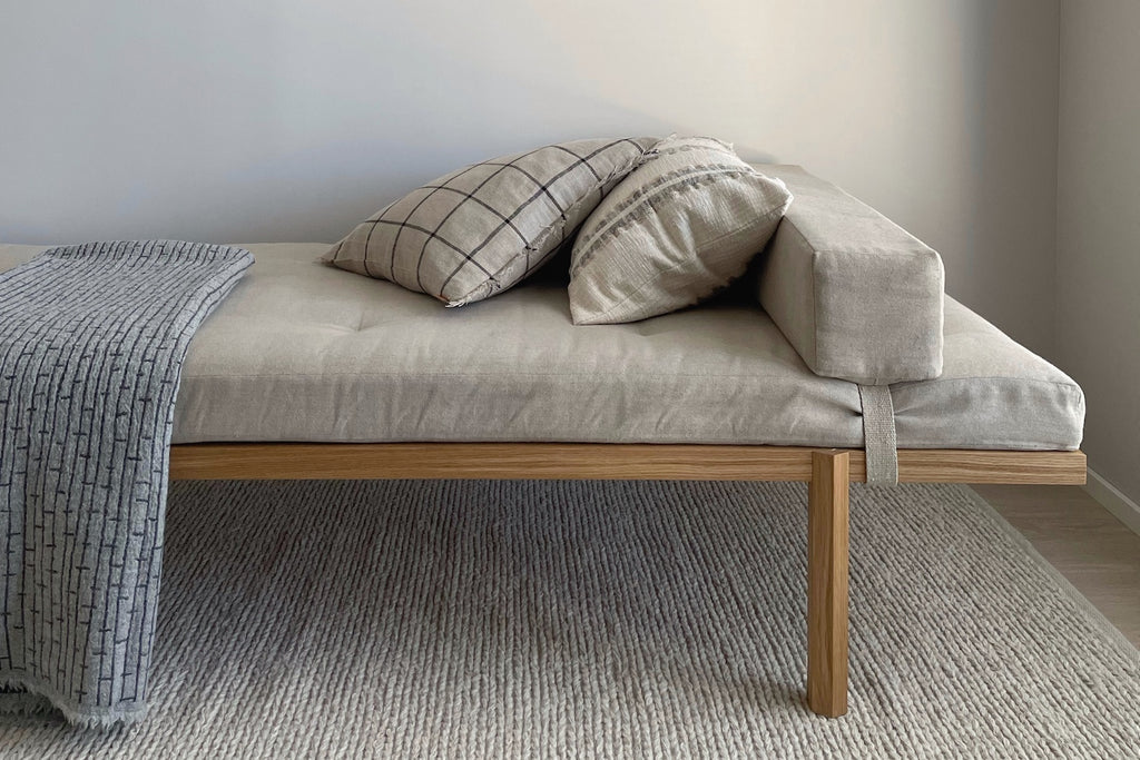 "Futon mallissa PEFC-sertifioidusta eurooppalaisesta tammesta valmistetun rungon päälle on asetettu pelkästään luonnonmateriaaleja. Siinä lepää Porilaisen Villa & Peite perheyrityksen kanssa tätä varten suunniteltu ja toteutettu futon-patja sekä tyyny. Kookoskuitu, luonnonkumi, villa rakenne verhoiltuna tummalla pellavakankaalla takaavat hengittävän luonnonmukaisen ja laadukkaan lopputuloksen joka on VOC päästöiltään 0. Kokonsa ja irroitettavan tyynynsä ansiosta Amélie tarjoaa myös yösijan sitä tarvitsevalle."
