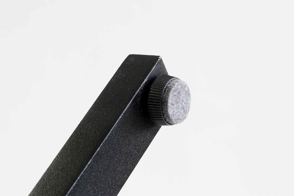 Pöydässä säädettävät tassut joissa huopa tai muovi.