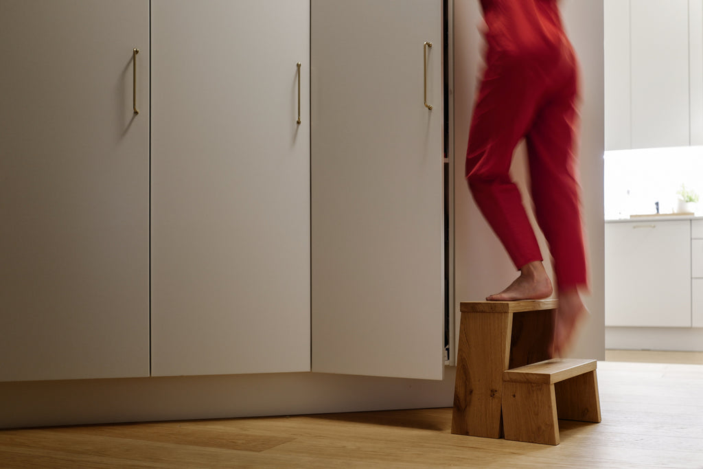 Siinä missä yksi ottaa ylähyllyltä keksipurkin lattialla seisten, tarvitsee toinen tukevan korokkeen jalkojensa alle saadakseen käsiinsä tuon samaisen purkin. Siinä missä pienet kädet haaveilevat osallistuvansa yhteisiin askareisiin keittiön tason äärellä, tarvitsee pienet jalat alleen jotain, joka nostaa ne ylös lattiasta.
