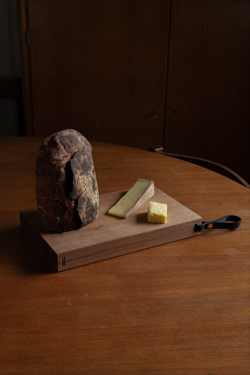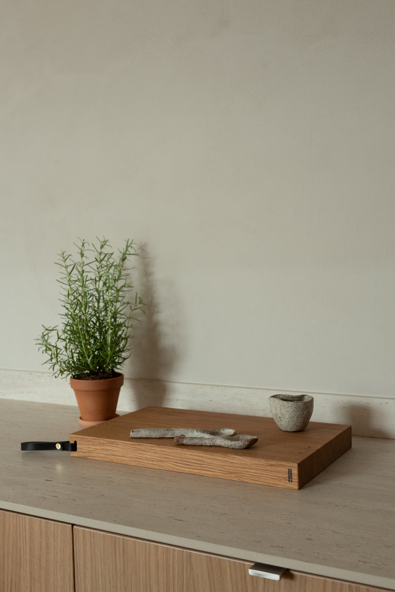 The oak Ratio cutting board is a gentle and excellent companion for all your kitchen knives. It also serves as a great serving surface and will become more beautiful as it ages.